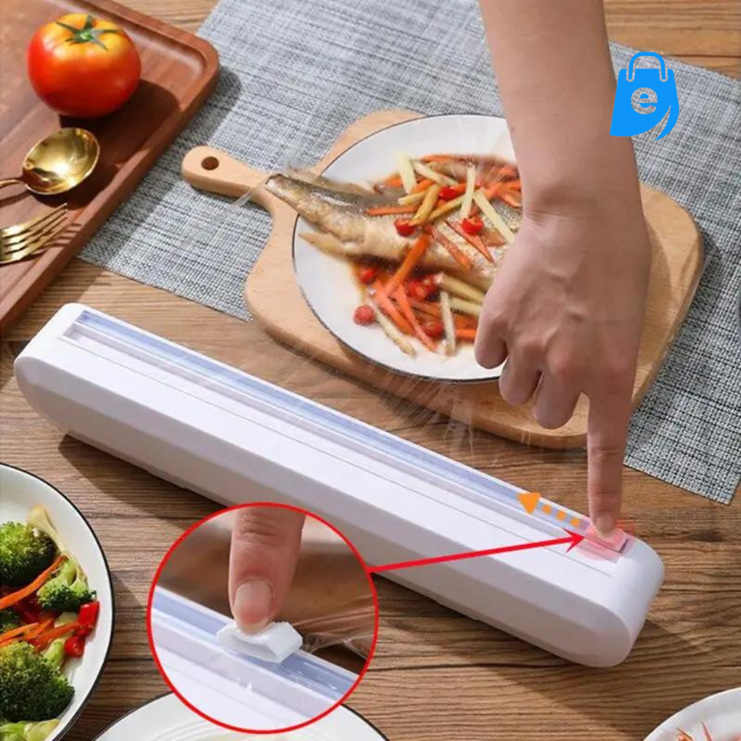 Facilite sua rotina na cozinha com o Cortador de Papel Filme e Alumínio - a solução perfeita para embalar seus alimentos sem estresse!